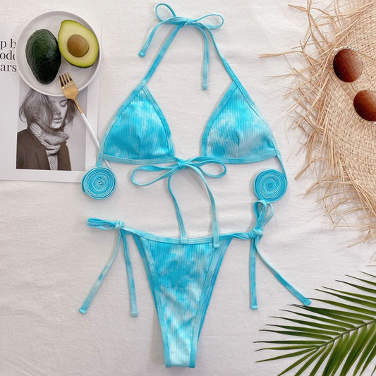 Tie Dye Micro Triangle Tie Side Bikini Swimsuit
