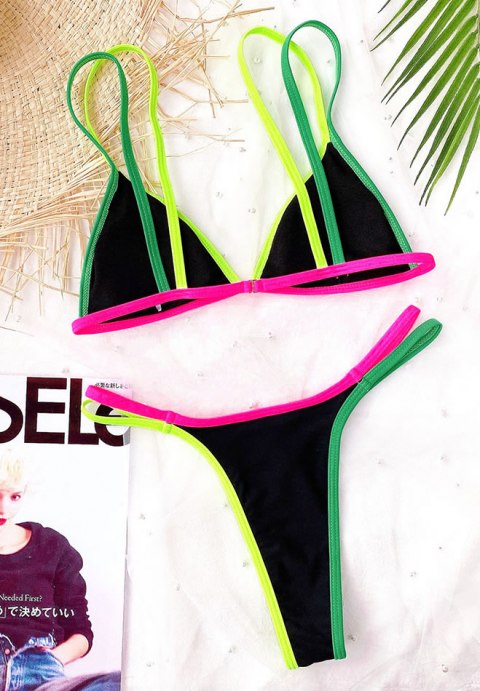 Contrast Binding Triangle Thong Bikini Swimsuit