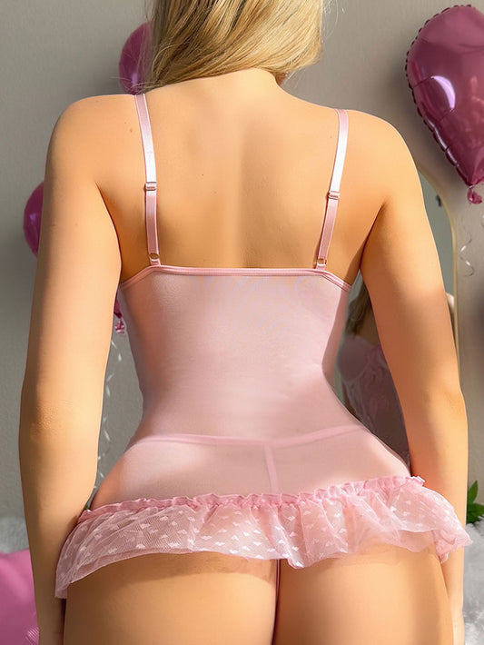 Adorable Lace Detail Sheer Babydoll