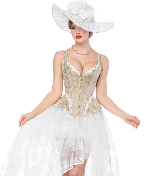 Sexy Lace Overlay Jacquard Tapestry Corset