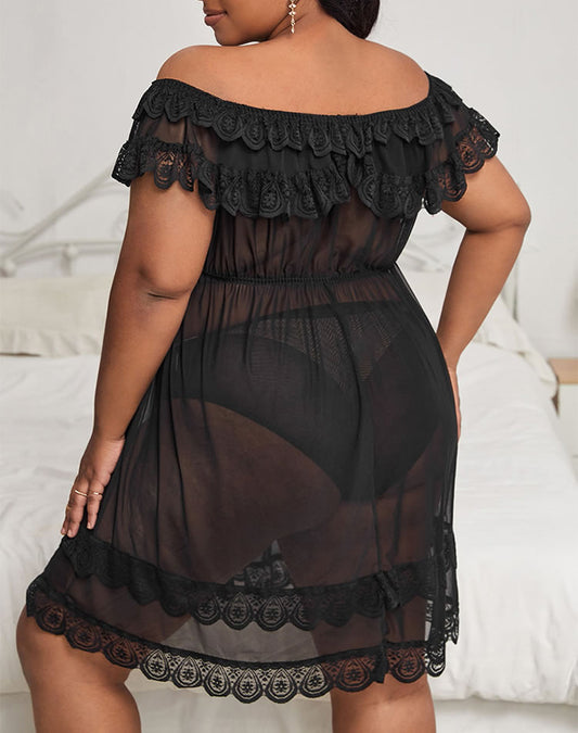 Women's Lingerie Lace Babydoll Plus Size Sleepwear Nightwear Mesh Chemise